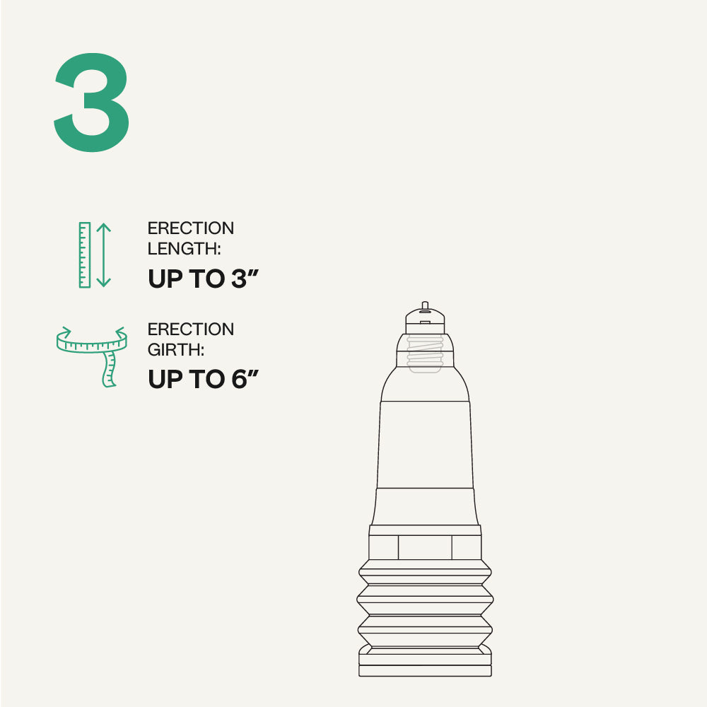 In order to measure yourself correctly your penis must be in an erect state. This will provide the most accurate method of ensuring you choose the correct pump. You will then be able to select a pump from the four ranges provided.